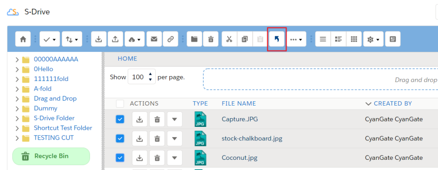 The Recycle Button takes you to the S-Drive Recycle bin, where you can either restore deleted files or hard delete them. The Recycle Bin does not automatically empty.