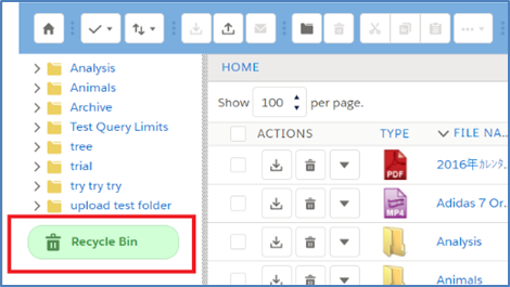 "Recycle Bin" button is used for navigating to the Recycle Bin of your Custom Object Files. You can find more information about the Recycle Bin in "Deleting Files" section.