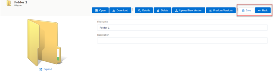 "Edit" is used to edit fields of a selected file/folder. After clicking this link; the edit page will be opened (Figure 102) and you'll be able to edit current custom object file's/folder's editable fields. Edit the fields, then click "Save". After clicking "Save", the fields you have edited will be saved. You can click on "Back" button to go back to previous page.