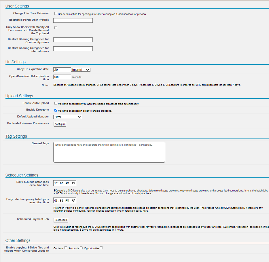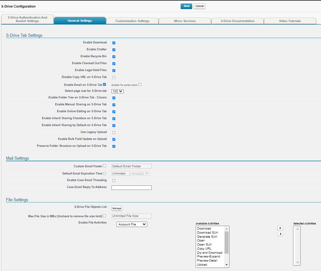 These settings apply to S-Drive tab only, where files are stored that are not associated with a particular object..