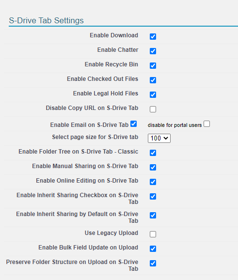 Enable Folder Tree on S-Drive Tab – Classic Choose to show or hide the folder tree. If you have many folder levels, checking this box can save time loading the page.