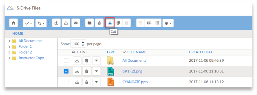 "Cut" button is used to move file(s) between folders. See "Moving Files" section for more information.