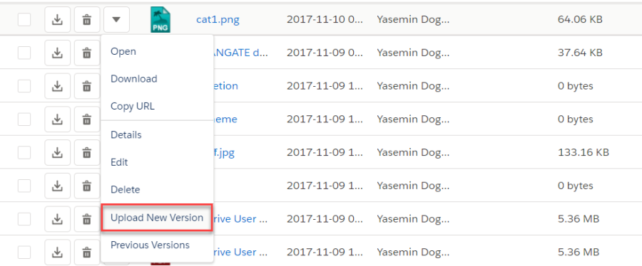 Upload New Version: If versioning is enabled version actions are shown on menu. By this action, you can upload versions of a file.