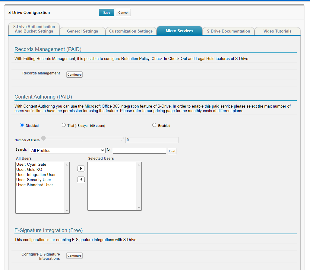 Micro Services are free and paid services you can enable to enhance S-Drive functionality.
