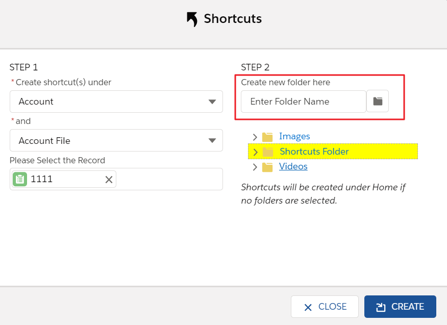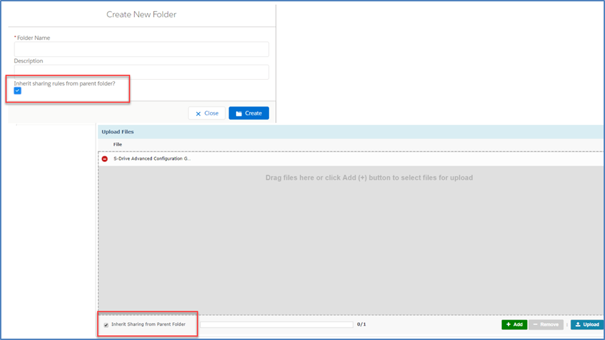 "Inherit Sharing from Parent Folder": If you're creating a folder in a subfolder and you have sharing enabled, you can inherit sharing from parent folder. Inheriting sharing from parent folder means all manual shares that are defined on parent folder will be applied to newly created folder. You won't be able to see this option if you're creating a folder at the "Home" level or if you do not have permissions for sharing.