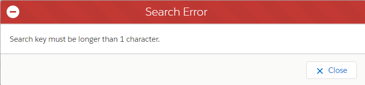 If you try to search with blank criteria or with one character, you'll get an error message saying: "Search key must be longer than 1 character."
