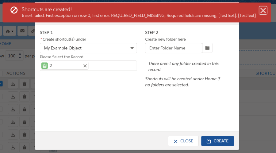You are attempting to create a folder that has the same name with an existing folder! You may not have access to the existing folder because of sharing rules.'