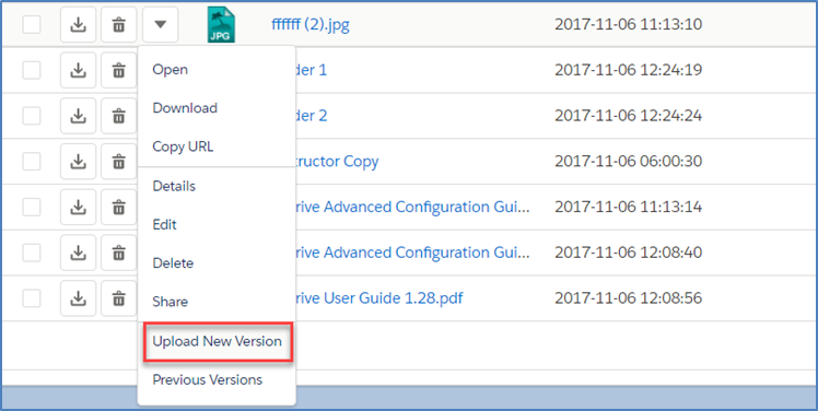 Upload New Version: If versioning is enabled version actions are shown on menu. By this action, you can upload versions of a file.