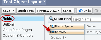 Click Fields and drag-drop a Section to an appropriate place in the layout