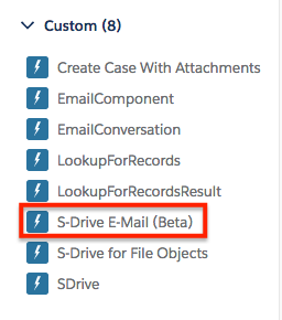 Drag and drop the S-Drive E-Mail component from the lightning components panel to your desired location in the Lightning page editor.