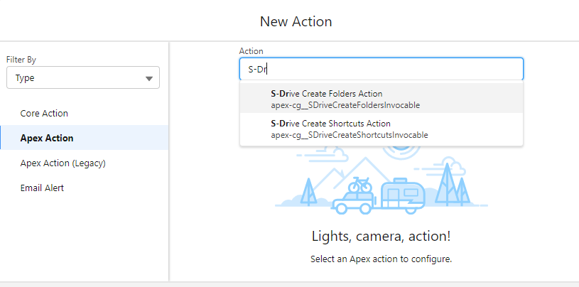 3. Type S-Drive in the search box and choose S-Drive Create Folders Action