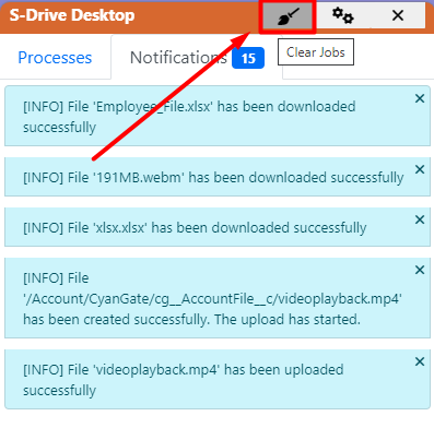 When you click on the Clear Jobs button, it will clear all the notifications and process files.