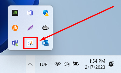 To open the System Tray, click on the up arrow on the taskbar.