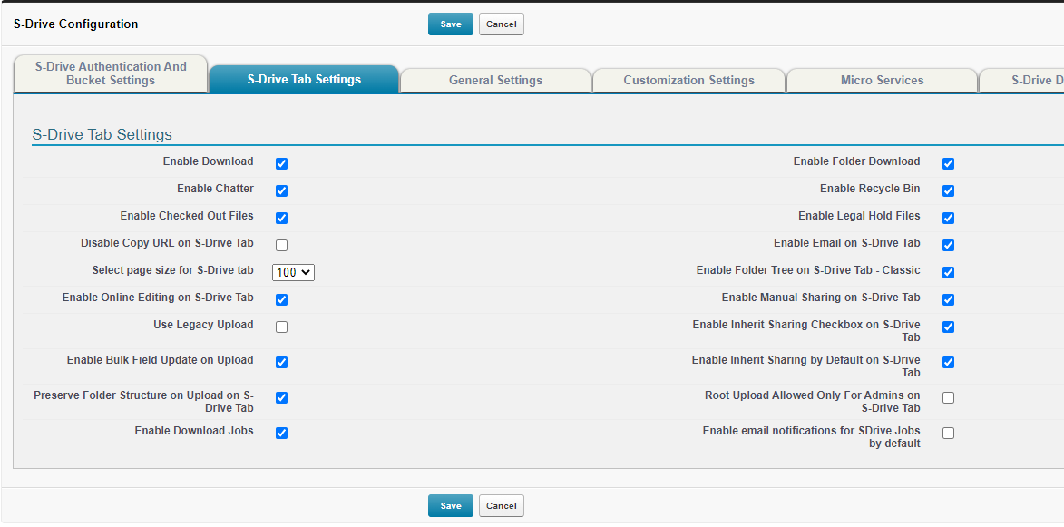 Root Upload Allowed Only For Admins on S-Drive Tab If checked, only Admin users can upload at the root level in S-Drive Tab. Non-Admin users need to choose a folder to upload into.