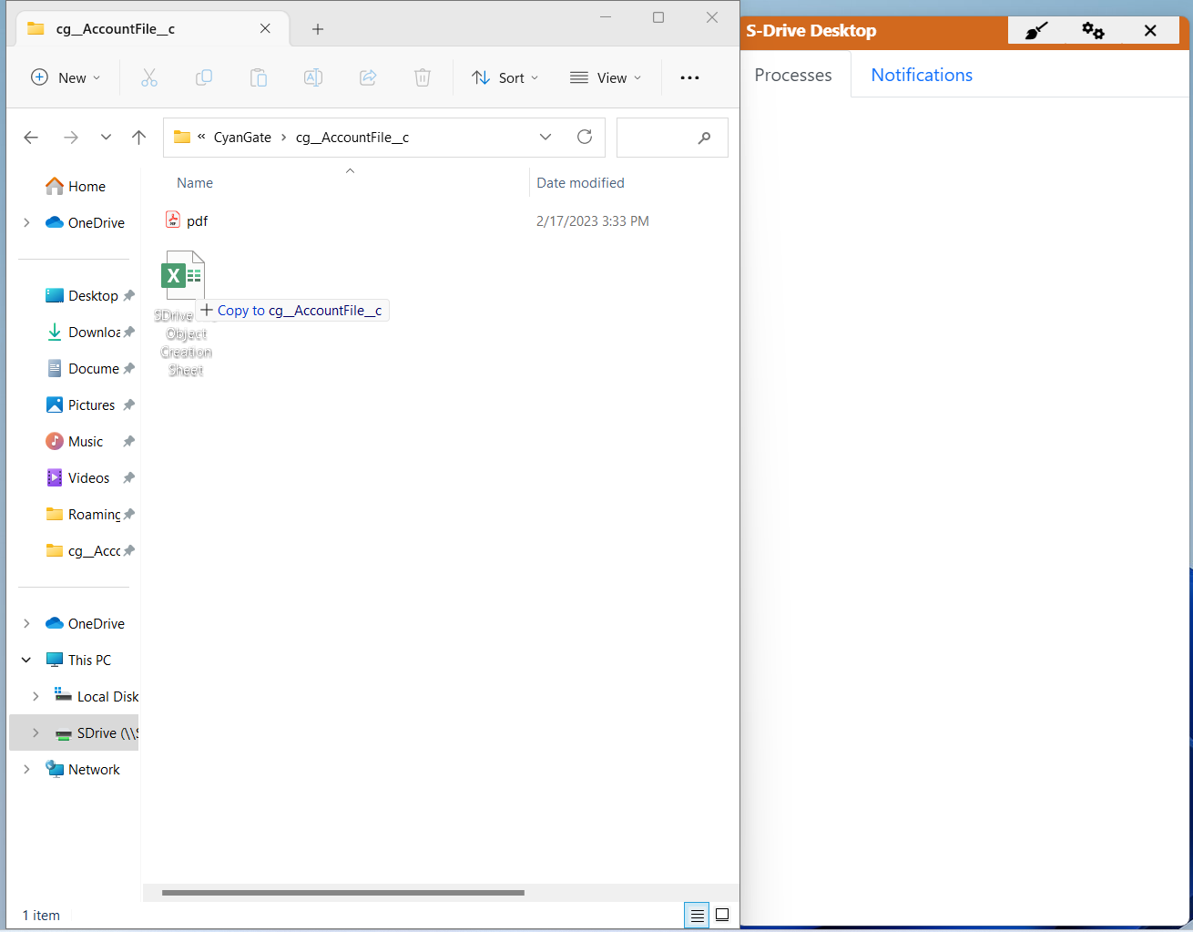 Navigate to the S-Drive drive to view and work with your S-Drive files and folders. The hierarchy for seeing your Salesforce data is Parent Object-->File Object-->Files as shown in the following steps.