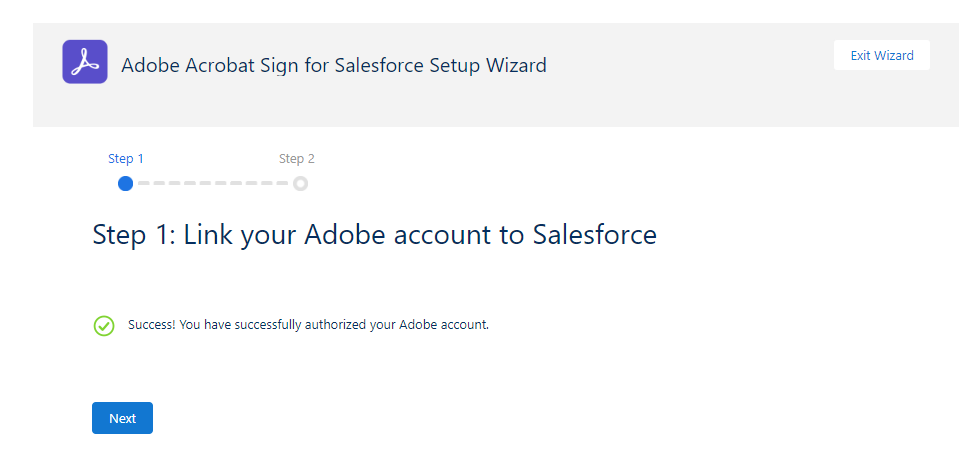 From the Salesforce App Launcher, go to the Adobe Acrobat Sign for Salesforce and click on the Adobe Acrobat Sign Admin tab to connect your Adobe account to Salesforce. Use