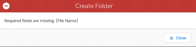 If you try to create a folder without a name, with forbidden characters, or with a name that exists in the current folder you'll get one of the warning messages below: