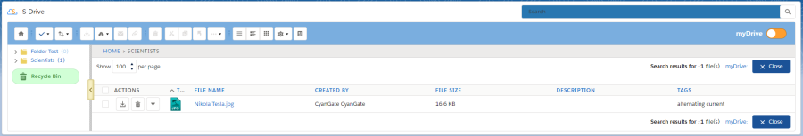 You can search for files and folders inside S-Drive Folders. To start a search, type the search criteria to the right corner of S-Drive Folders screen, into the search box and click Enter.