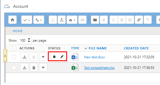 "Content Type Column" displays a type icon based on the content type of the account file/folder.