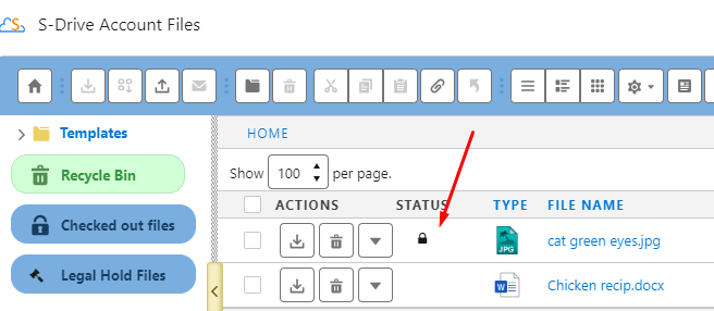 Back in S-Drive, the file will show locked for editing with a lock icon and pencil icon in the status column.