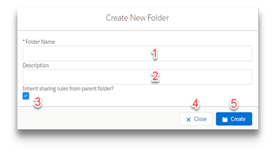 "Inherit Sharing from Parent Folder": If you're creating a folder in a subfolder and you have sharing enabled, you can inherit sharing from parent folder. Inheriting sharing from parent folder means all manual shares that are defined on parent folder will be applied to newly created folder. You won't be able to see this option if you're creating a folder at the "Home" level or if you do not have permissions for sharing.
