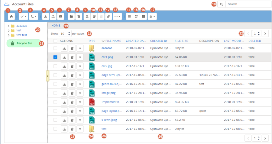 "File Name Column" shows the file name information for the account files. You can sort files/folder ascending or descending by clicking the field header.