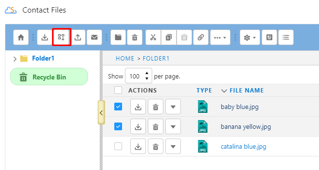 ![]() | Download File(s) | Download selected file(s). If just one file selected it directly download file. If more than one file or folder selected, it creates a zip file and download it |