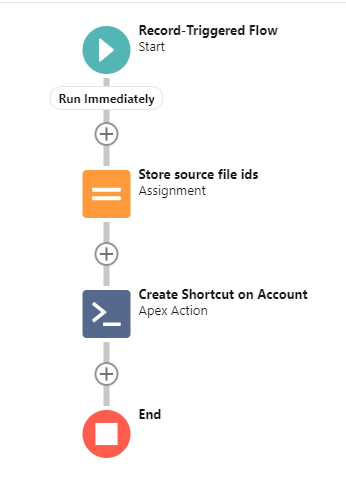 A common use case is to create a shortcut on another record when a file is uploaded. For example, when an Opportunity File is uploaded, create a shortcut to the file on the Opportunity’s Account.