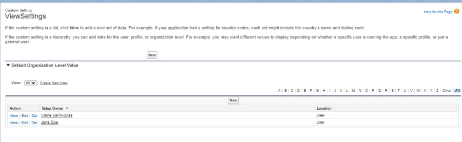 Different views for different users or profiles can also manually be created here by the system admin by clicking New.