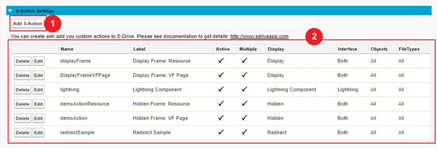 This configuration enables users to create and add custom actions to S-Drive. Please refer to S-Actions (Custom Actions) for more information on this feature.