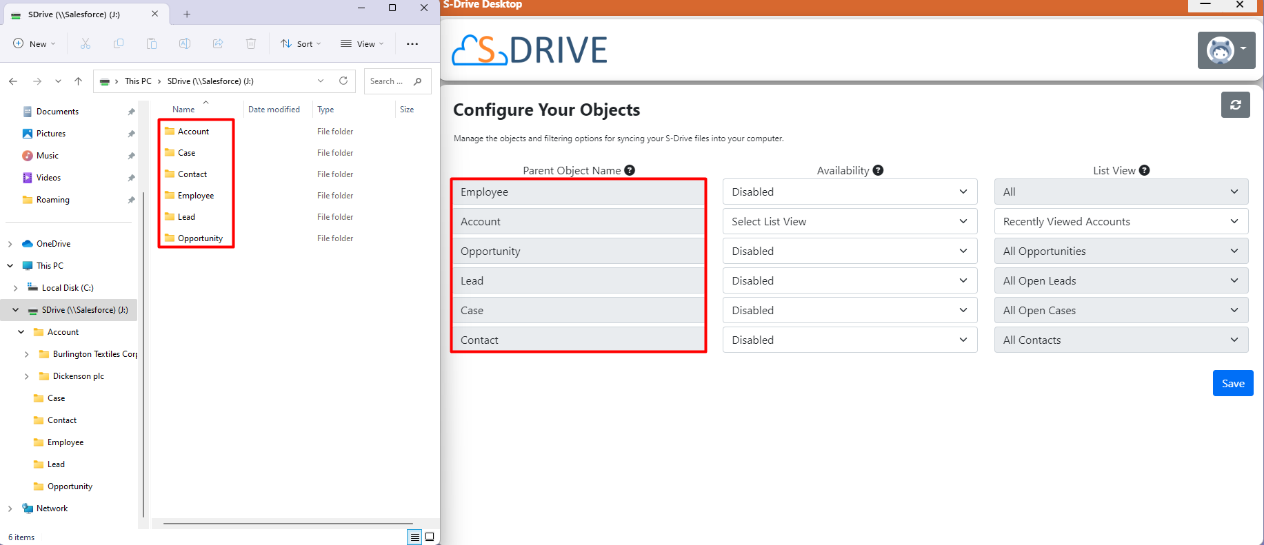 • S-Drive Desktop does not allow the creation of parent objects (Account, Case etc.) from operating system via creating folders.