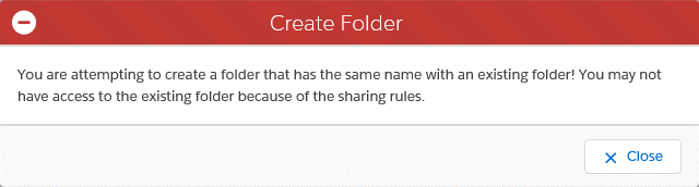You are attempting to create a folder that has the same name with an existing folder! You may not have access to the existing folder because of sharing rules.'
