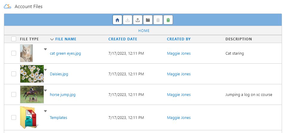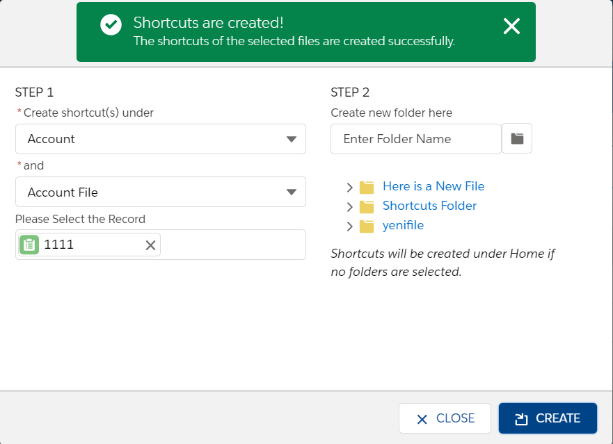 ![]() | Create Shortcuts | Allows you to create a shortcut of a file on another record. This allows you to see a file in more than one place. |