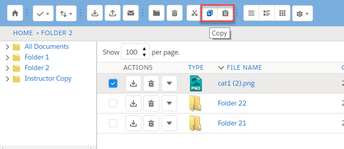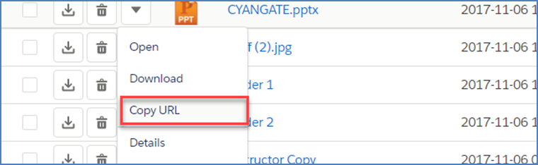 Copy URL: This option is displayed only for files. You can copy the file download URL to the clipboard. See "Copying URL to Clipboard" section for more information.