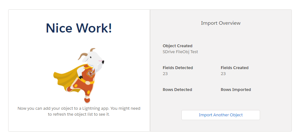 Ex: SDrive_FileObj_Test.xlsx will create a custom object named as SDrive FileObj Test. We suggest a naming convention that includes the object name followed by “_File”, such as MyObject_File or Account_Custom_File.
