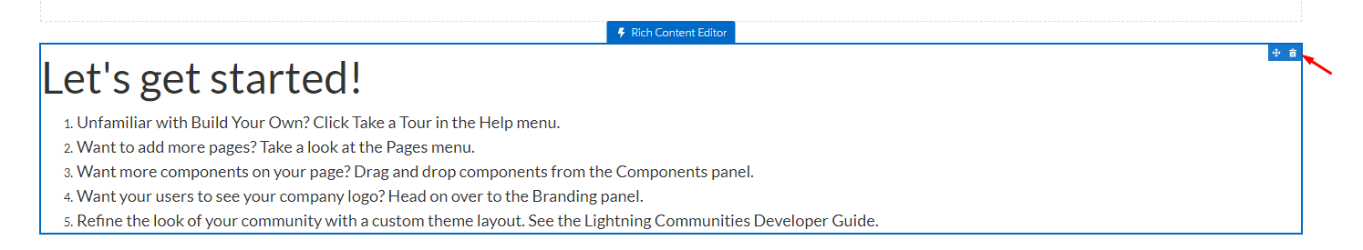 Click the Trash icon on the “Let’s get started!” section to remove it.