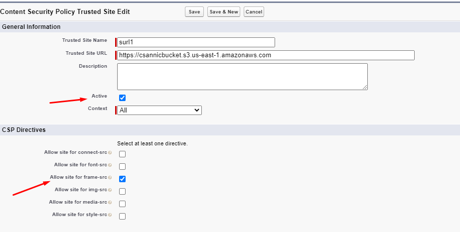 Add the following CSP Trusted Sites. (See info box for instructions and which boxes to check.) <bucketname> is the name of your bucket. Add one CSP Trusted Site for each bucket.