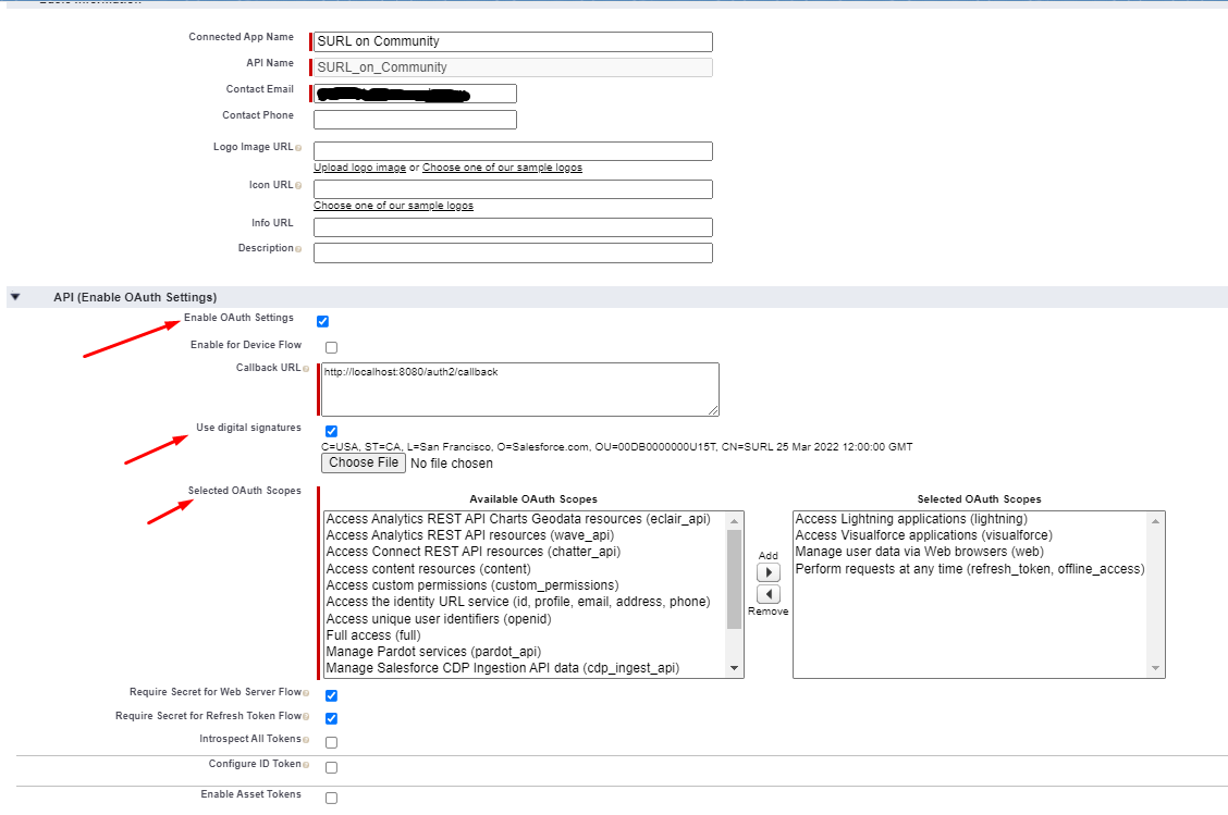 Enter Name: SUrl_Community_Certificate / Value: the unique name of the self-signed certificate you created in STEP 3