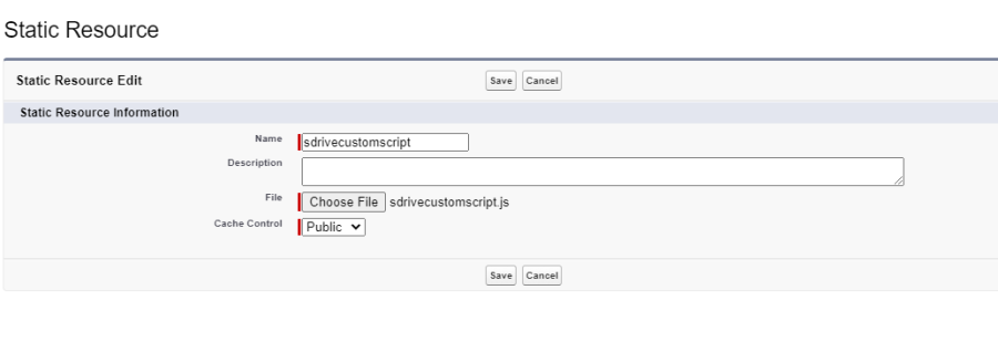 Create a CSS stylesheet in .css format and upload it as a static resource to Salesforce. You can name it as "sdrivecustom.css". You can upload a static resource from Setup > Static Resources > New. The stylesheet should be in the following format.