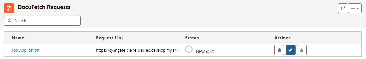 Once saved, you will see the Request on the Request component. You can copy the link and email it to the Requestee, edit the Request, or delete the request.