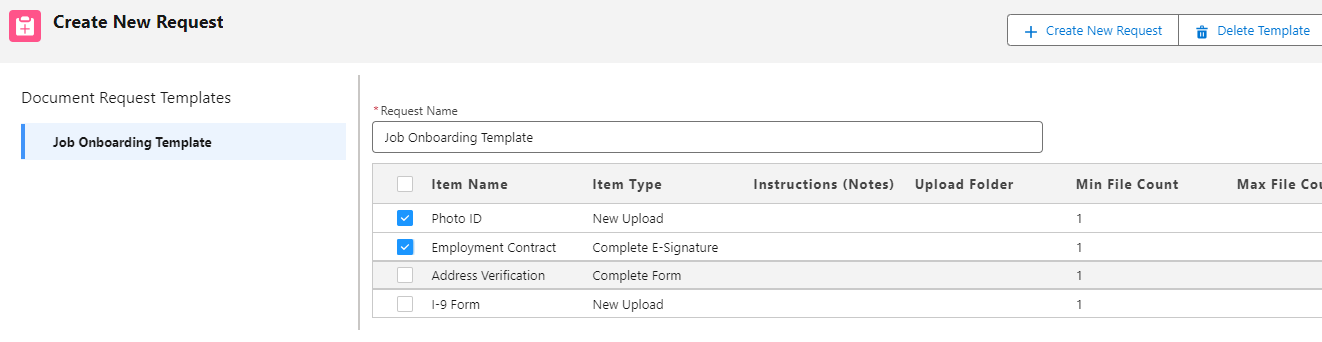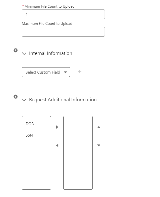 You can select a minimum and maximum number of documents to be uploaded for this request