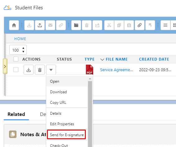 With E-Signature, you can send documents out to DocuSign directly from S-Drive and the signed document will be uploaded back to S-Drive.